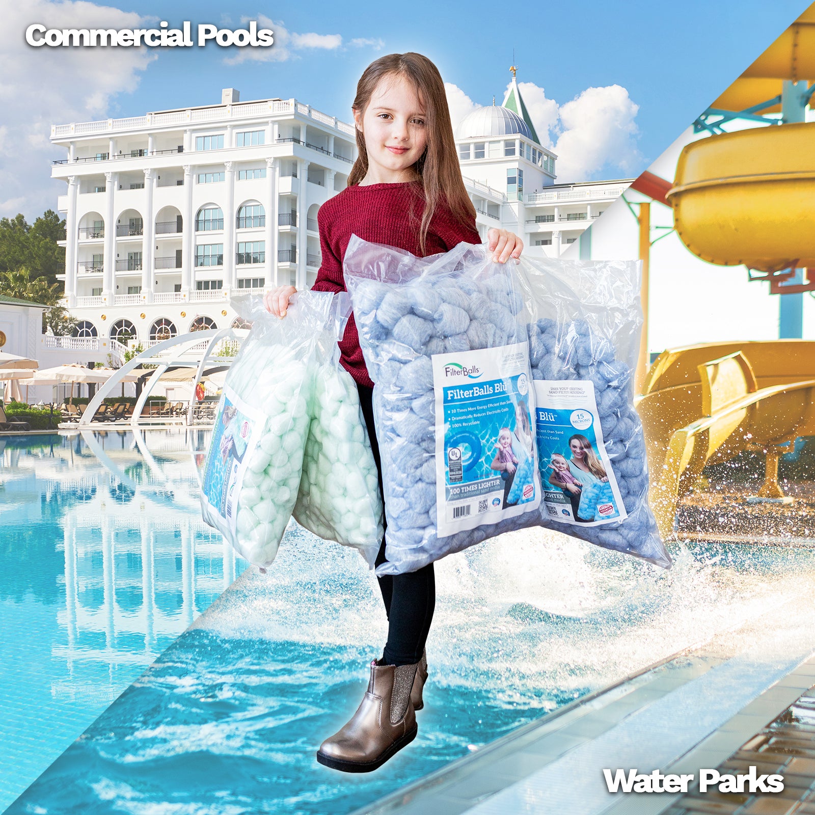 • FILTERBALLS BLU WATER FILTER - The go-to filter for pool applications. At 15 microns, FilterBalls Blü is superior when compared to sand media with just 20-35 micron filtration. By using Blü, organic material such as pollens can now be removed, improving your water quality for clear results. Perfect for Swimming Pool, Spa, Water Parks, and Residential Commercial.